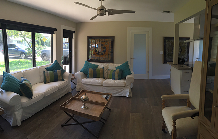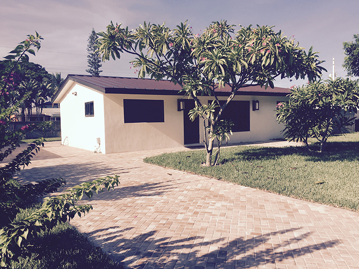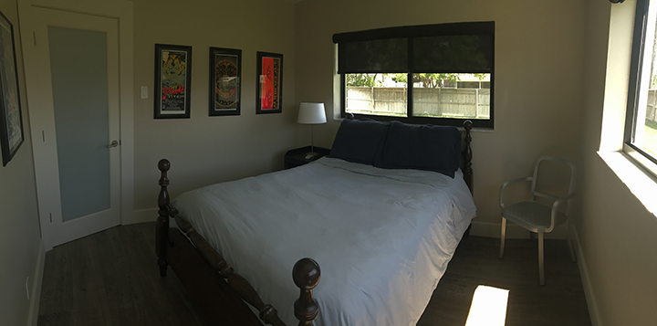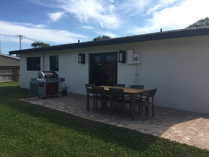 Spanish/ Mediterranean style cottage with modern metal roof, tinted windows, and solar shades throughout; 3 bedroom, 2 bath home, comfortably sleeps 6 (2 queen beds, 1 full bed); front and back patios; 2 HDTVs with cable and wifi; laundry room with washer and dryer; full kitchen including drip coffee, toaster, water/ice dispenser, plates, silverware, pots & pans; bath towels, beach towels; large grass backyard with privacy fence; LED lights throughout, NEST thermostat; fully furnished inside and outside